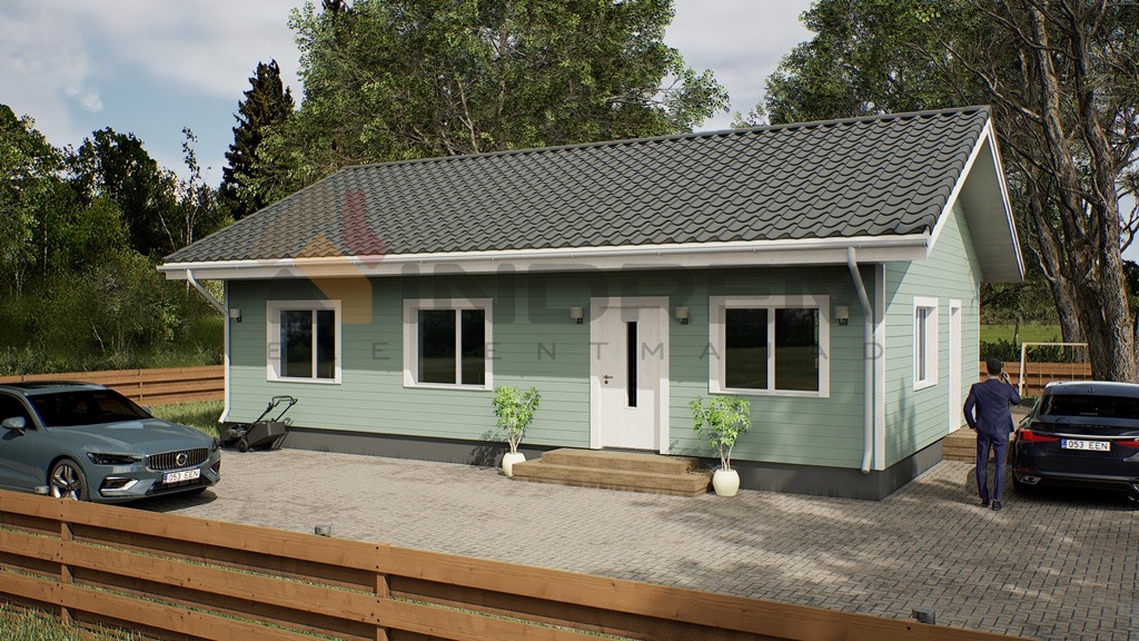 Sisetööd/viimistlustööd: Sisetöödest katame eramu elutoa, magamistoad, köögi ja esiku põrandad parketiga ja pvc põrandaliistudega. Pesuruumi, majandusruumi, tamburi, leiliruumi ja WC põrand katame keraamilise plaadiga. Lisaks katame keraamilise plaadiga ka pesuruumi seinad. Eramu laed on viimistletud valgeks. Niisketes ruumides laed viimistletud valgeks ja kaetud niiskuskindla värviga. Siseseinad viimistleme Tellija valitud värvitoonidega.. Saunaga majadel kasutame elektrikerist. Tehnilise ruumi seinad ja lae viimistleme OSB plaadiga ja katame tulekindla värviga. Tehnilise ruumi põrand on betoonist.