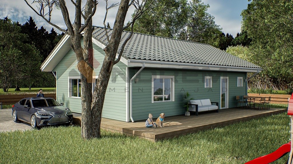 Tehasepakett/majakarp: Maja valmistatakse puit seinaelementidest, mille elemendid toodetakse valmis meie enda tootmishoones, ning kuivas ruumis. Tuuletõkke peale paigaldatakse vertikaalne ja horisontaalne roovitus, millega tagatakse nõuetekohane fassaadi tuulutus. Lisaks kogu maja alumise ääre ulatuses paigaldatakse tsinkvõrk mis takistab näriliste ligipääsu. Kandetaladeks kasutame liimpuitalasid ja tugipostideks puit poste. Maja fassaadilauaks kasutame peensaetud materjali mis on tehtud kuusest ja mis on töödeldud Teknose krundiga ja värvitoodetega. Kande seinadeks kasutame tugevsorteeritud puitkarkassi ja kõik muud vahesinad on tehtud 95mm plekk-karkassist.