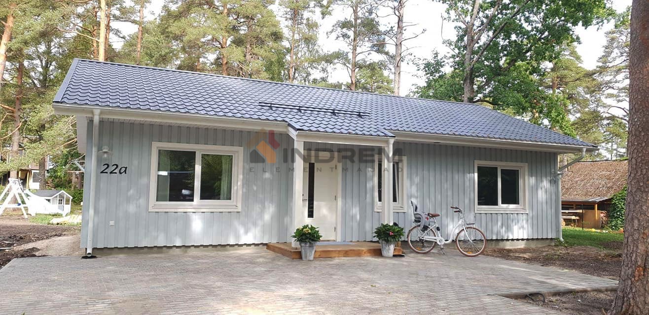 Tehasepakett/majakarp: Maja valmistatakse puit seinaelementidest, mille elemendid toodetakse valmis meie enda tootmishoones, ning kuivas ruumis. Tuuletõkke peale paigaldatakse vertikaalne ja horisontaalne roovitus, millega tagatakse nõuetekohane fassaadi tuulutus. Lisaks kogu maja alumise ääre ulatuses paigaldatakse tsinkvõrk mis takistab näriliste ligipääsu. Kandetaladeks kasutame liimpuitalasid ja tugipostideks puit poste. Maja fassaadilauaks kasutame peensaetud materjali mis on tehtud kuusest ja mis on töödeldud Teknose krundiga ja värvitoodetega. Kande seinadeks kasutame tugevsorteeritud puitkarkassi ja kõik muud vahesinad on tehtud 95mm plekk-karkassist.